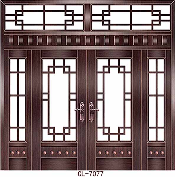 市面上的铜门分豪华、中档、普通三类。豪华型面板材料为不锈钢板,主框为不锈钢方管制作,花饰栅栏均为不锈钢型材;中档型一般采用方圆钢材和花饰相结合的组合形式;普通型则采用方钢管、圆钢及扁钢(16×4毫米)等材料。用户可根据自己情况选购自己喜爱的类型。