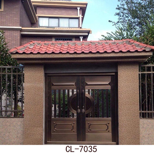 2、选择铜门的风格,可选经典中式风格,也可选带有罗马柱的中西结合风格。铜门上可选用的图案有鹤、麒麟、鹿、鸳鸯等吉祥的代表动物,以及梅、兰、竹、菊、松、桃、荷等花草植物一些西式的抽象图案都可定制,配件上也可选用罗马柱等。